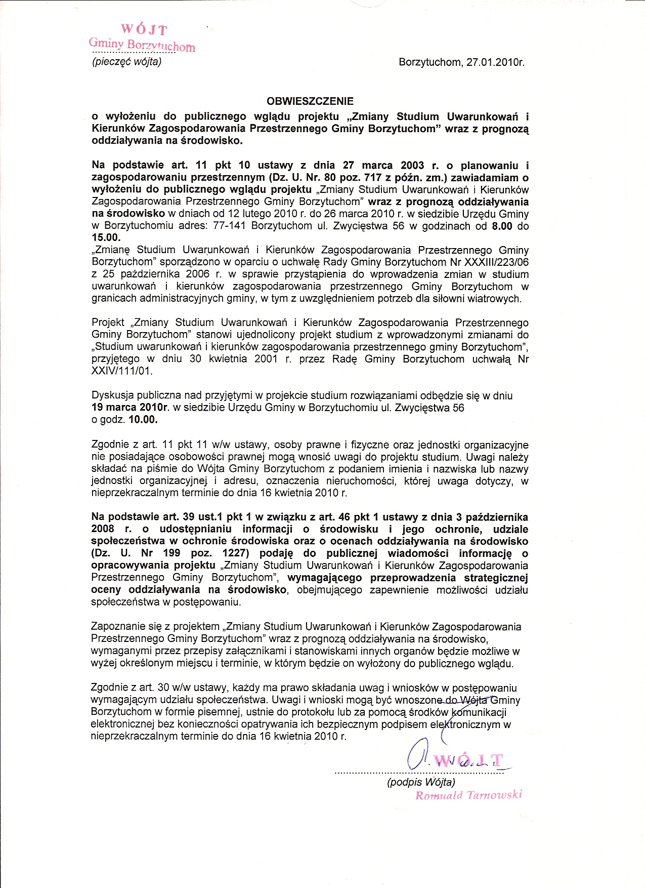 Projekt założeń do planu zaopatrzenia w ciepło, energię elektryczną i paliwa gazowe dla Gminy Borzytuchom